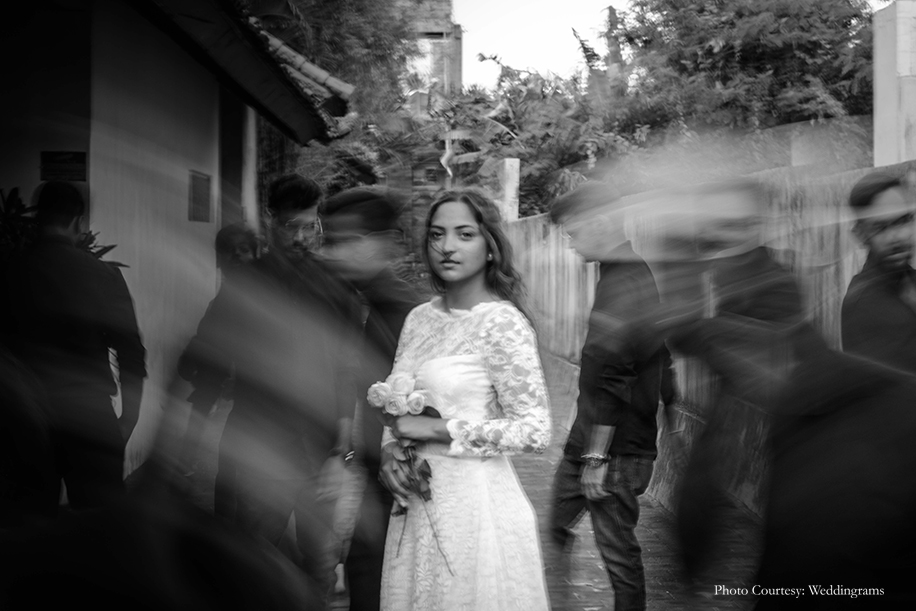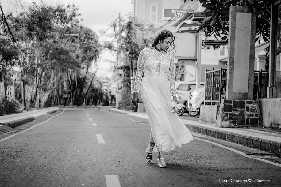 Fortunately for the guys, her attempts were overruled, and the results of the shoot were there for all to see. Hera looked like a gypsy damsel in a delicate ivory dress and flowing curls entwined with yellow blooms, and the red and black theme of her squad against the rural coastal beauty of Bali exuded an essence of old-world romance. The black and white images are high on vintage nostalgia which makes it different from the highly colorized albums out there.