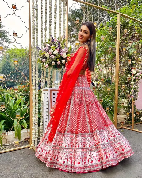 A red lehenga is surely a favorite amongst Indian brides. Bridesmaids can equally embrace the red trend. Take cues from Indian Television actress Smriti Khanna who looked radiant in a red lehenga by Falguni and Shane Peacock as she attended Dia Mirza’s intimate wedding in Mumbai. Featuring intricate work on a red and white canvas, Smriti Khanna is the ultimate bridesmaid goal this season!