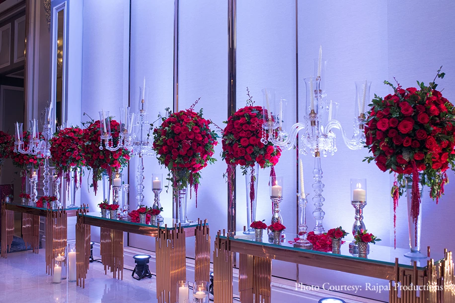 Combining luxury and romance, this groom along with the planning team conceptualized a stunning ‘all red garden reception event for his bride!