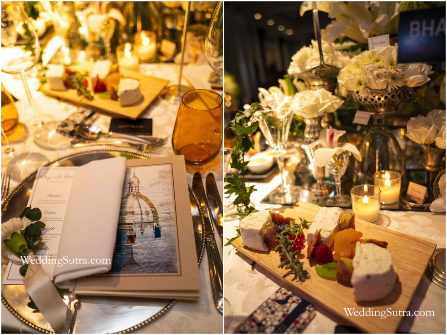 Since the design was based on everything that goes into the making of a healthy and fruitful union, mini place cards bearing elements of marriage in beautiful calligraphy were positioned in between the various features. She even laid down a quirky “Marriage Menu” which featured, as she likes to call it, food to fuel a for a successful marriage and read as below: