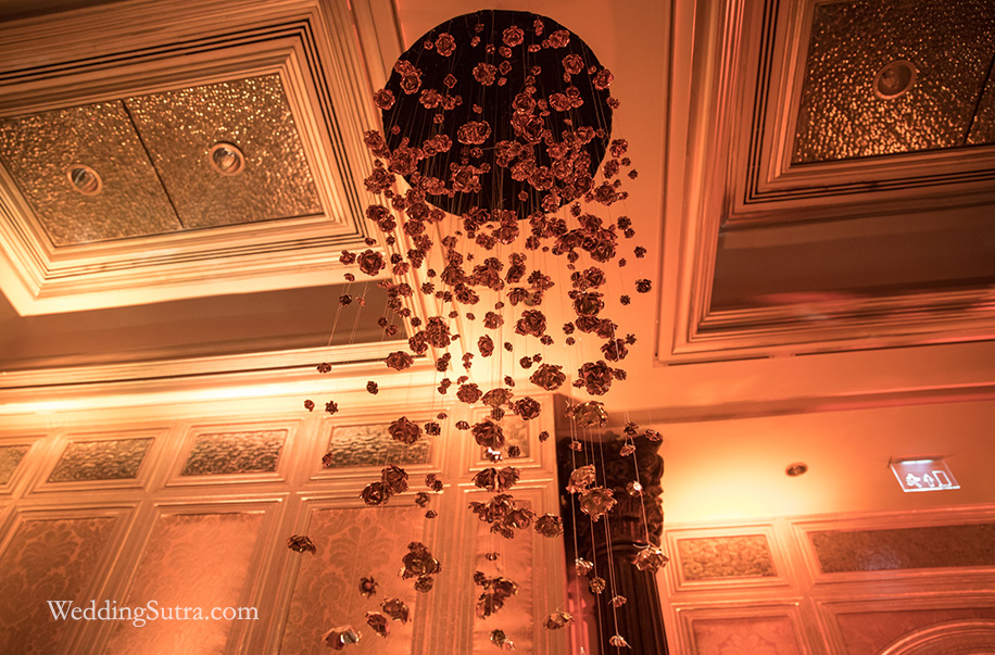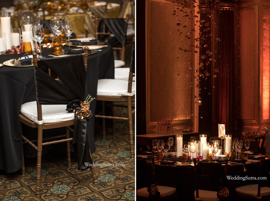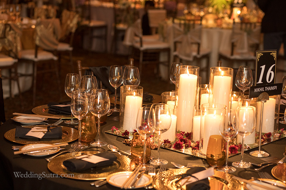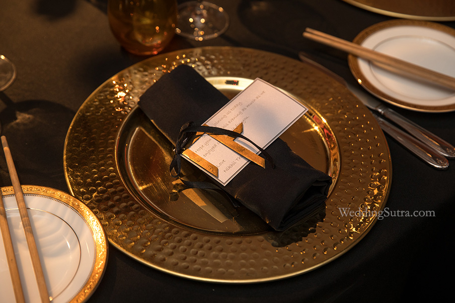 The thought of a wedding rarely ever evokes images of black décor. However, Nikhil Thampi decided to shake things up a little at his tables by creating a gorgeous black and rose gold setup. The colors complemented each other perfectly and looked like they belonged at a refined wedding party. The deep hue with the metallic touches made an especially amazing combination for winter celebrations.