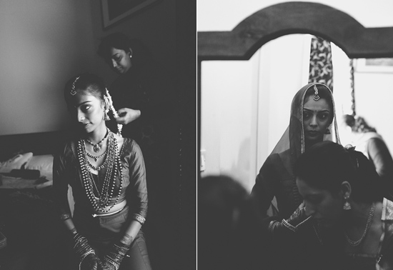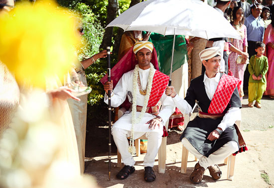 Roshni and Narendra who live in the US, decided to host their wedding in their ancestral town. So the destination was chilly Coorg, just before Christmas. A Coorg wedding is perhaps the only Hindu wedding, where the rituals are conducted without a priest and there is no puja; and where alcohol and meat is always served. The groom claims his bride after a member of his clan has killed mock banana trunk soldiers after which the elders bless the newly married couple.