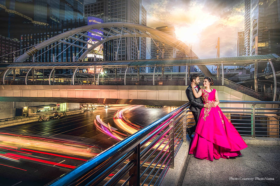 The cityscapes of Bangkok in Thailand were lit with action from Pankaj and Darshana’s post-wedding shoot. Pankaj shares how he tricked his bride into packing clothes for the stunning shoot, and why the time and effort he took to plan everything was worth it.