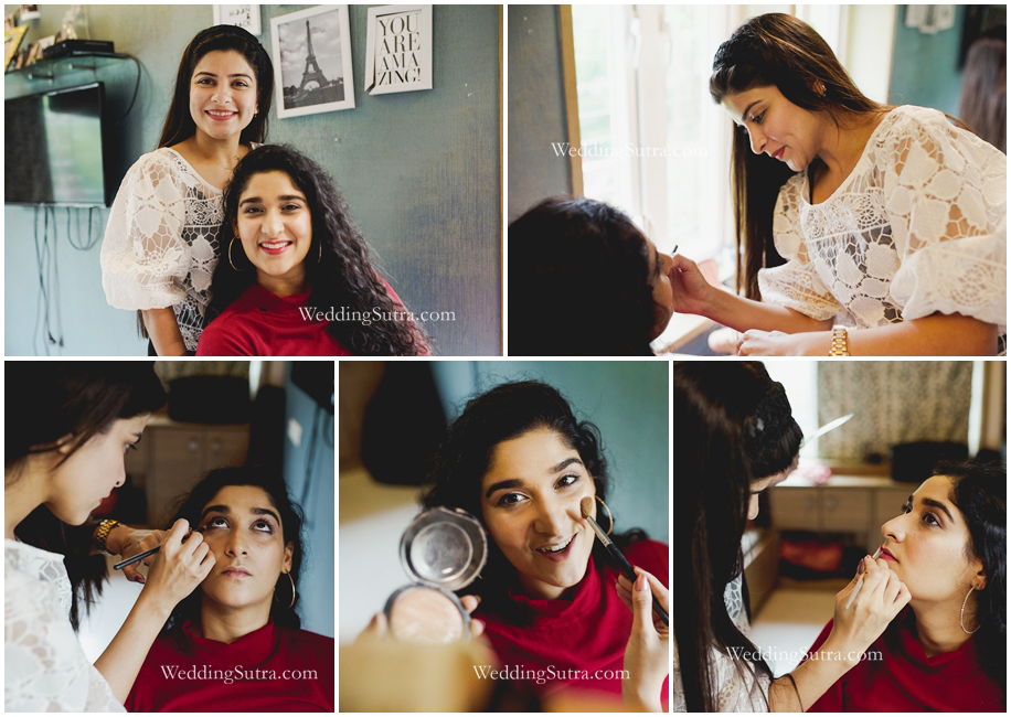 Bride-to-be Palaek’s day began with an insightful session with makeup artist Tabeer Amrohi. An informative discussion with Tabeer taught Palaek the importance of having her skin hydrated and how it can enhance the effect of the make-up products used. Tabeer also shared important tips with Palak on how to start prepping up for her wedding six months in advance. She experimented various looks on Palaek’s face, helping her understand which suits her best. A simple nude look for the eyes, melded with a conventional pink on the lips, was the look that Palaek liked the most and sported all day long.