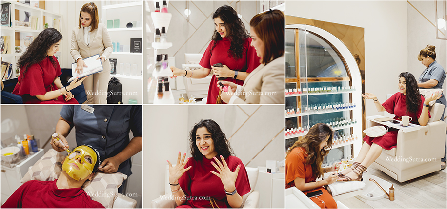 Wedding planning is not an easy job and Palaek, like most brides, was weary after all the running around. A pampering session at the famous luxury spa, The White Door, however, helped her feel rejuvenated and refreshed to proceed with the remaining tasks. Here she was treated to one of the institute’s finest and most sought-after treatments, the Knesko Gold Mask, in order to help her maintain her pre-bridal glow and prep her skin for her big day. The team also gave her their luxurious classic manicure, which made her hands feel soft and dainty. While the sessions were in progress, Palaek learnt about all the treatments she should start undergoing to maintain the health and quality of her skin and hair before her big day.