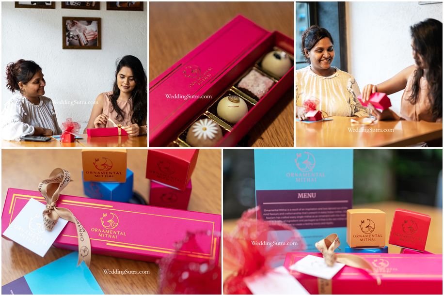 Sweets and celebrations go hand in hand. The next stop for the day was taste testing some of the choicest and delectable sweet creations at Ornamental Mithai. With a range of traditional sweets infused with contemporary flavours like “dark chocolate panjiri” and “red velvet peda,” encased in sophisticated packaging, these sweets make for great wedding favours, and are something unique to serve your guests.