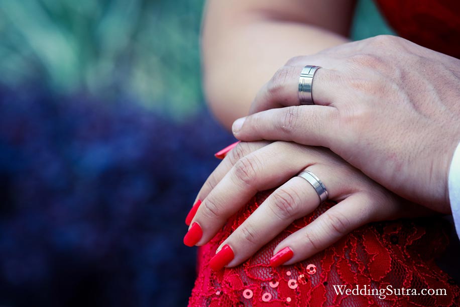 The couple plans to take an unforgettable honeymoon and relax and unwind after the wedding. But they know that pre-wedding shoots are also a great opportunity for a little ‘Just us time’. Hanging around at the salt-water pool at the J W Marriott, Juhu was exactly that – a chance to spend some time with each other amidst gorgeous scenery as the sun set and glinted off their platinum love bands.