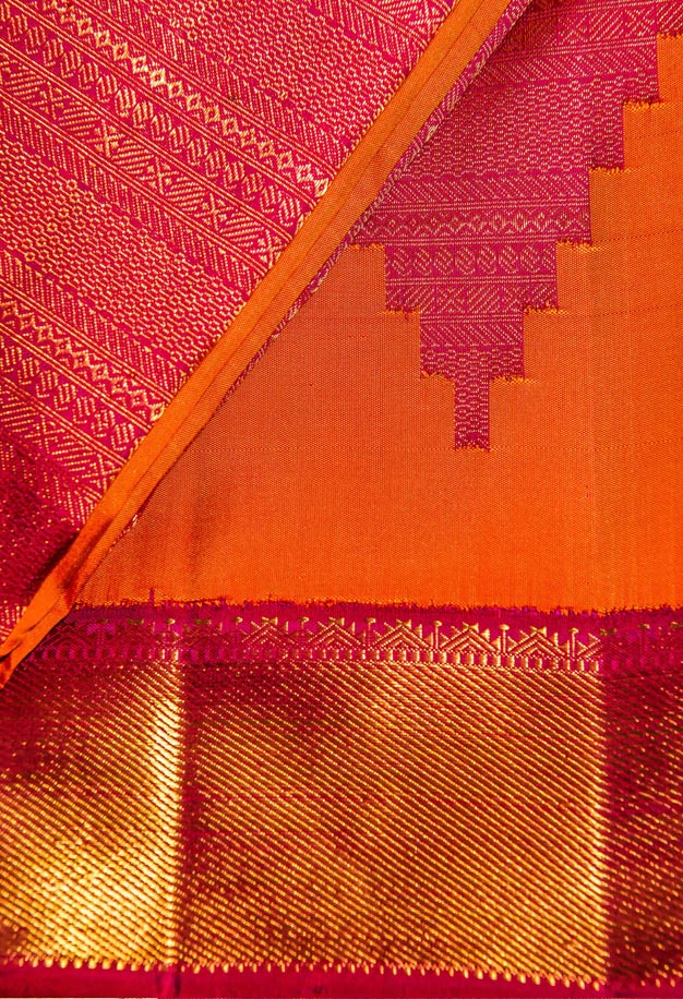 “Contrary to what some people believe, the Kanjivaram is an eternal genre that will remain relevant in times to come. The design vocabulary of a Kanjivaram saree communicates the values of our culture and tradition, and this is what makes it a powerful style statement. The Kanjivaram was always worn by royalty and was considered the most opulent of garments. A real Kanjivaram has more silk per square inch of fabric than any other textile genre and uses real zari as a rule, unlike most other genres. Real zari is high in its silver and gold content and silk is the most valuable of textile raw materials. The Kanjivaram genre flourished under the rule of the ancient Dravidian Dynasties of South India who were amongst the most powerful and wealthiest of their kind in the world. This fact is borne out even today by the sheer magnificence and wealth of the temples of the South. That those belonging to this civilization should have chosen to pioneer the creation of this genre that speaks volume of the opulence and luxurious character of the Kanjivaram. In comparison to a lehenga, a Kanjivaram is an older piece of textile that is much lighter and easier to wear for an Indian wedding. Of course, I am not saying that lehengas or Benarasi sarees are not fashionable or beautiful, but I believe their appeal is rivaled, if not surpassed, by that of the Kanjivaram as a choice for Indian weddings. The final point I would say in this regard would be that while fashion is ever-changing, some traditions remain relevant forever. The Kanjivaram and other handloom genres are representative of what I would call ‘everlasting fashion traditions’ that shall remain in style for many years hence.”