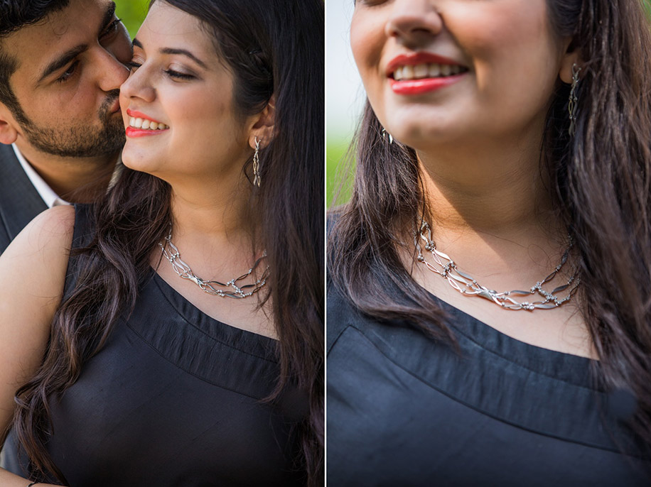 We met Desha and Yash at the luxurious Holiday Inn Mumbai International Airport. While Desha shared her love story with us, photographers from Picsurely captured candid moments turning them into memories the couple will cherish forever. Desha’s hair and makeup were by the talented Serena Rayani, and she is wearing platinum jewelry by Rasiklal Sankalchand Jewellers.