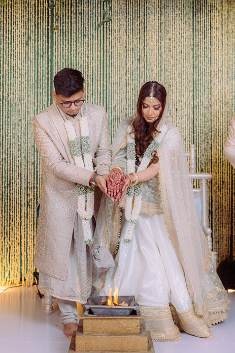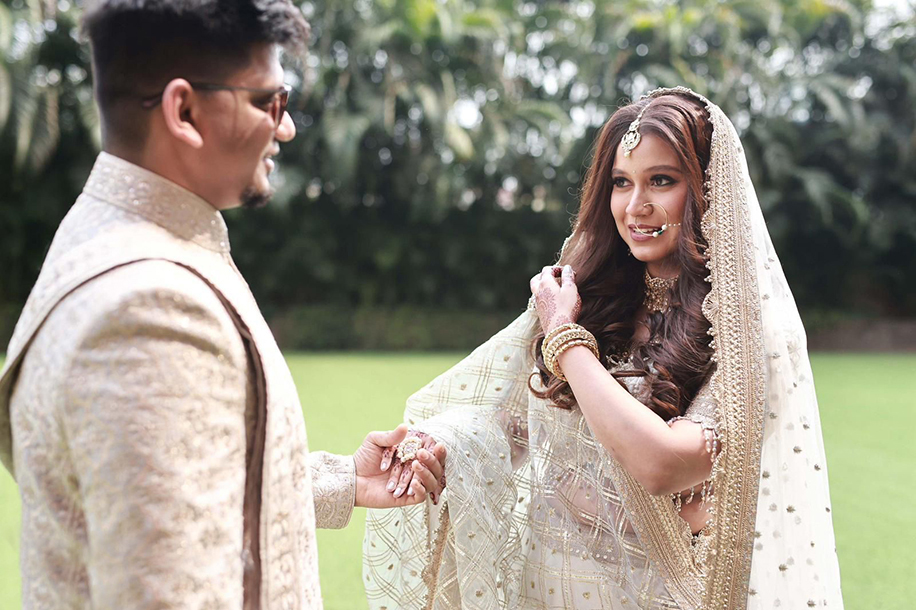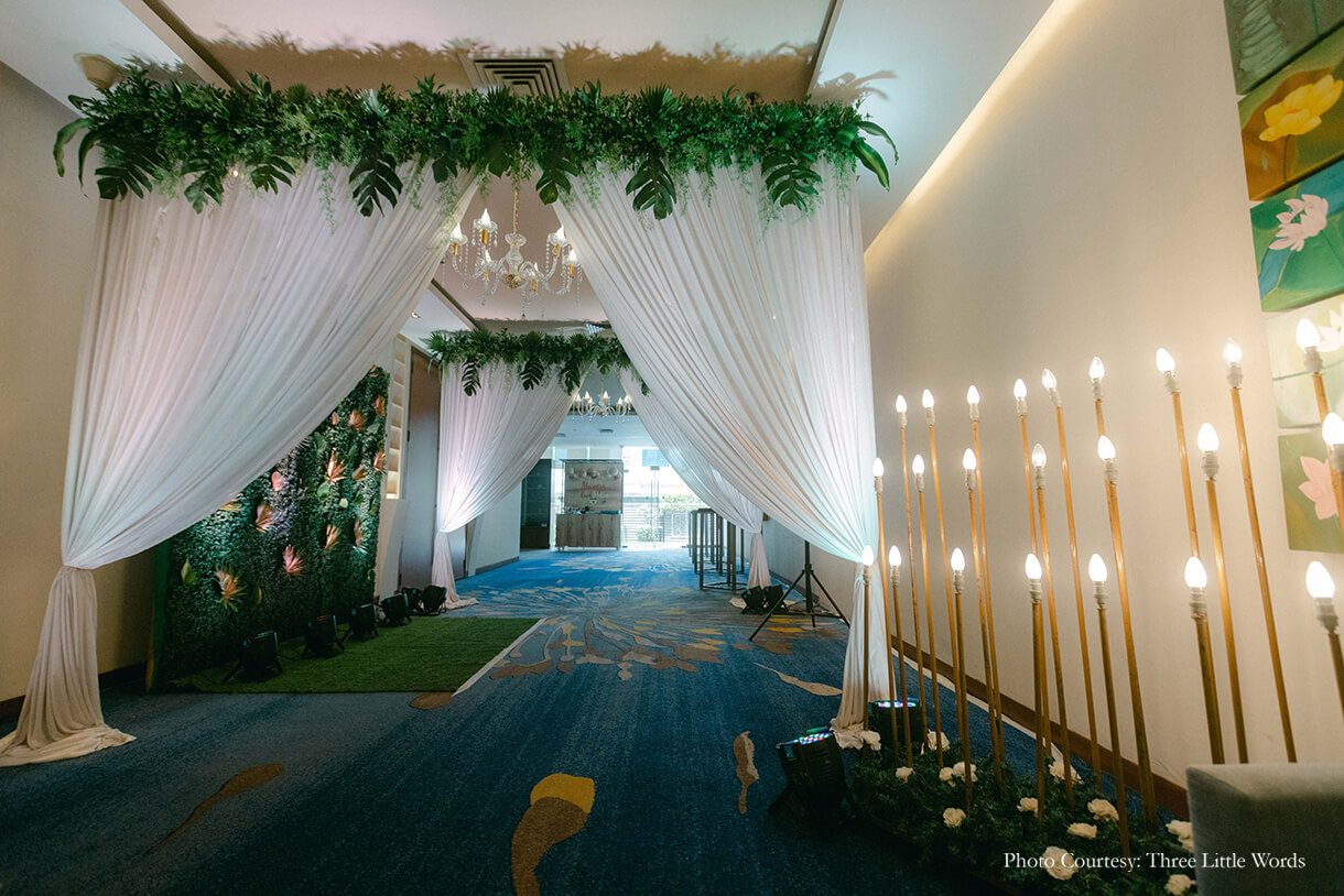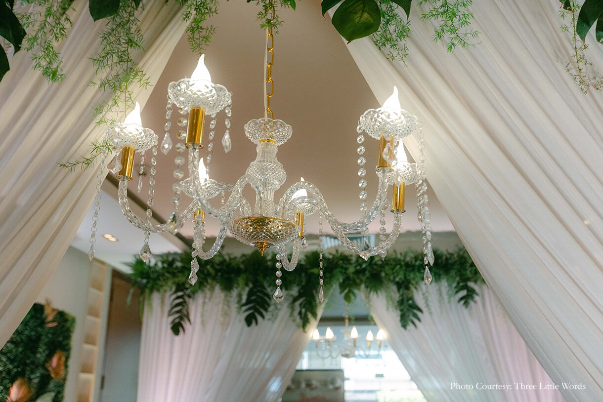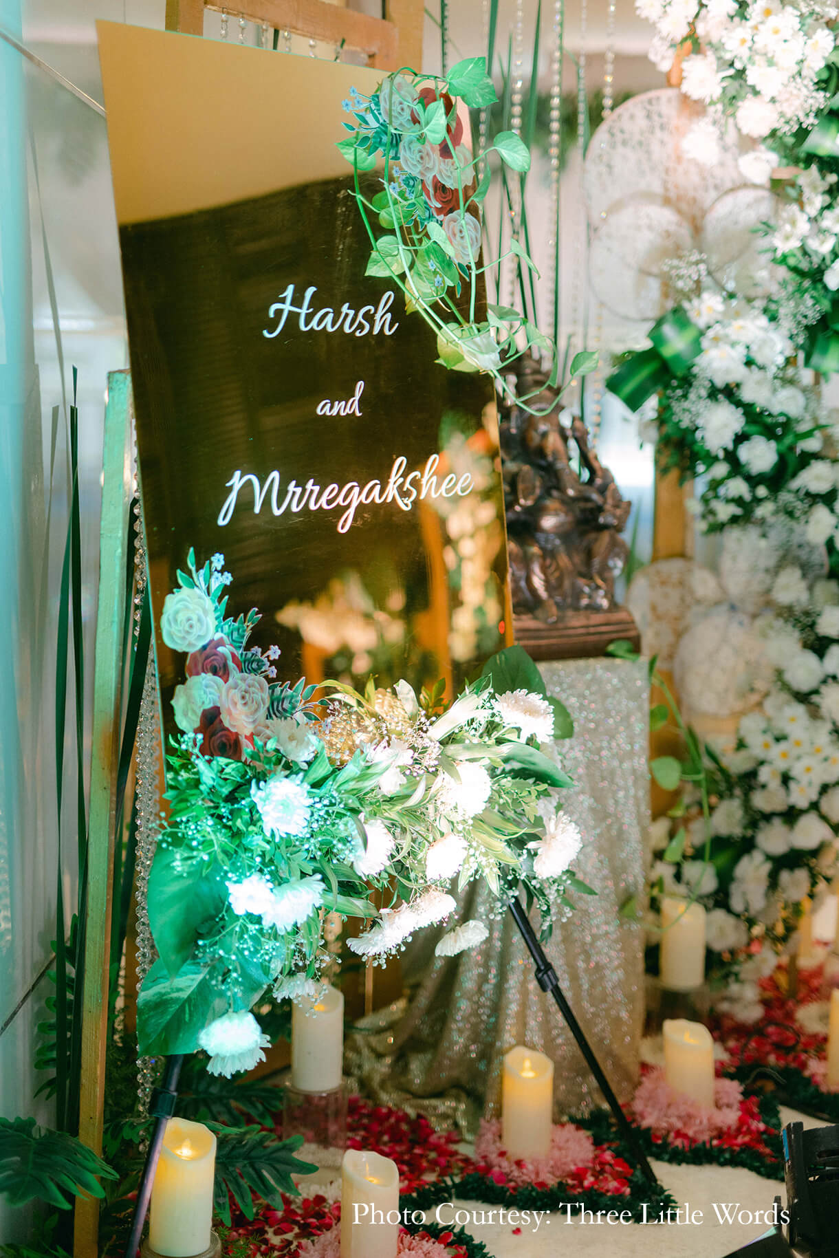 A celebration that transported one to a serene garden-like atmosphere while being completely indoors, Mrregakshee and Harsh’s wedding was a true reflection of their love for modern aesthetics and nature. Designed by WeddingSutra Favorite – Just Engaged Weddings and Events the union was a pleasing combination of green and white hues created using ample floral elements and ivory elements.