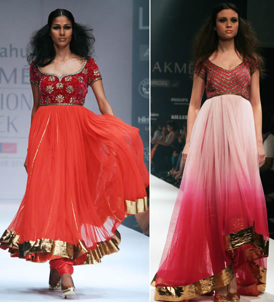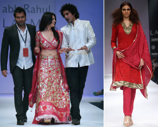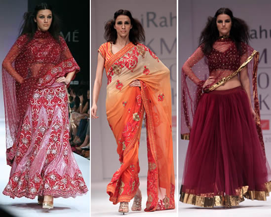 Designer duo Abhi and Rahul chose Mughal princess Zeb-un-Nissa as their muse for the latest line from their label ‘Abhirahul’. The bridal line was full of gorgeous silks, velvets and khadi– in colours like orange, maroon, burgundy to emerald, pink, beige and white.