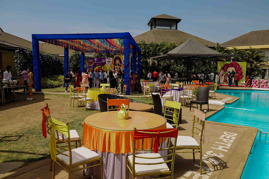 True to its name, Tropical Retreat is nestled in the heart of nature surrounded by beautiful and surreal verdure. Adaptable to every vision, this stunning 5-star luxury resort is just 2 hours away from Mumbai! The perfect backdrop for a dream fairy tale wedding – you can have a marriage fit for royalty if you wish without a splurge. Paving the way for romance and tranquility, here you not only get to celebrate your love surrounded by stunning vistas but also give your loved ones an opportunity to indulge themselves to the fullest. Sprawled across 8.5 acres of greenery, the resort intertwines spaciousness with contemporary artistry. There are four different kinds of rooms to choose from depending on your preferences. You can embrace these abodes specially curated to induce harmony and comfort. The Magnolia room features a beautiful pool view, the Anthurium perfect for large families while the Executive Suite room has a living room and a bedroom. On the other hand, the Junior Suite room is a compact area that lets you sprawl in your own space with absolute comfort.