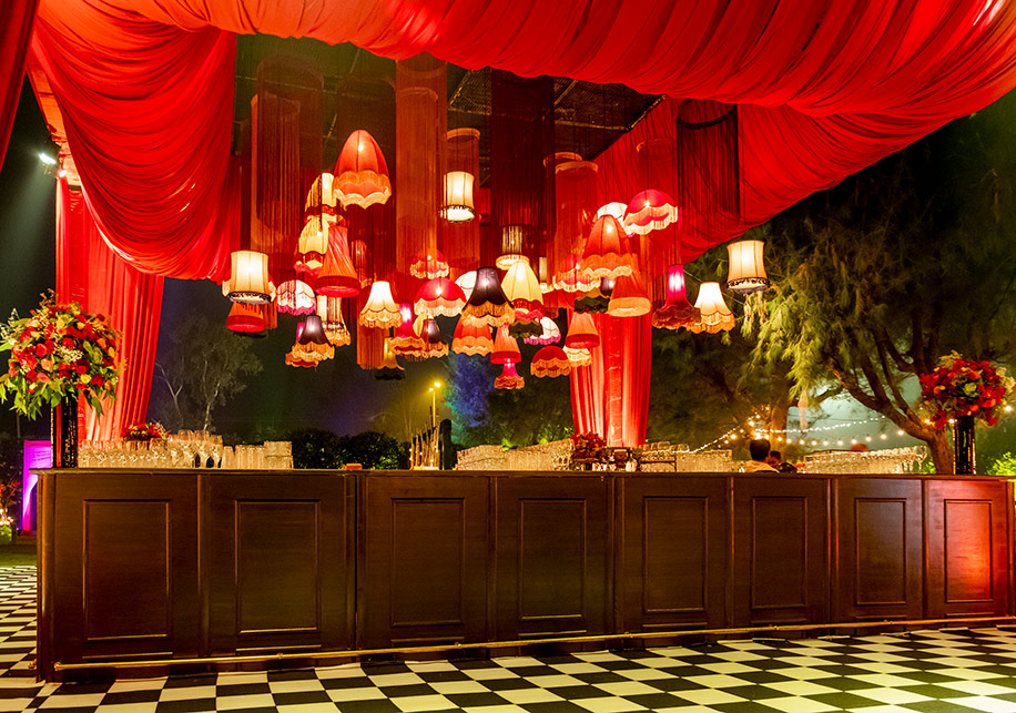 Red, the fiery color of love, makes for the perfect color palette for fall and winter receptions. While pastels are a more popular trend these days, wedding designer and decorator Devika Sakhuja went a step further and added a deep crimson touch to the venue at Amaara Farms in Delhi.