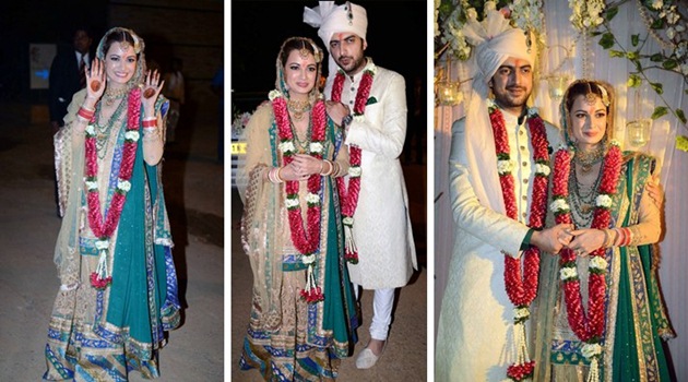 Actress Dia Mirza wed Sahil Sangha at an intimate function in New Delhi. The wedding cum reception venue was Rosha Farms, a private farmhouse in Ghitorni, South Delhi. Security was strict at the venue and after the couple tied the knot, they stepped out to pose for waiting news persons, before proceeding to change for the reception.