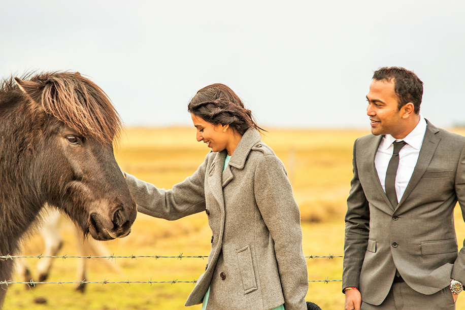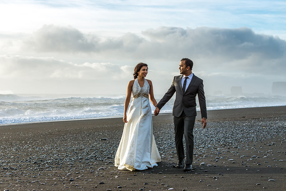As a nature and travel enthusiast, I’ve always had a long list of places I wanted to travel to for my honeymoon. Iceland with its alluring landscapes, black sand beaches, spurty geysers and feisty volcanos was right on top. My husband came up with the idea of doing a post-wedding shoot in Iceland. It took me a month to reach out to photographers in Iceland, get quotes, and finalize the itinerary for the shoot. We finally zeroed in on Iceland-based photographer Odinn Yngvason who won us over with his dreamy images and beautiful captures. We discussed our ideas and thoughts over email and decided to spend one day on the shoot out of the 10 days in Iceland.