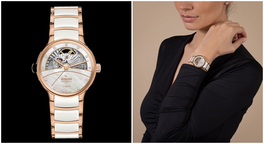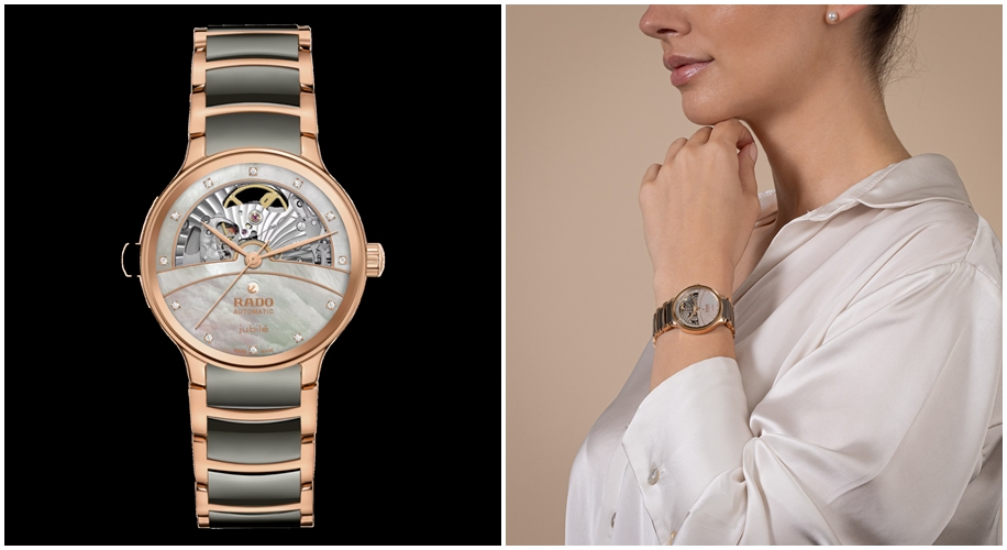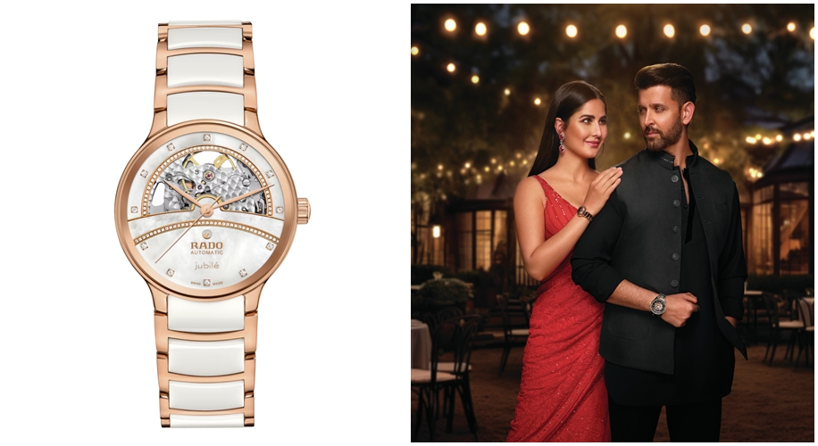 Known for her grace and style, brand ambassador Katrina Kaif personally exemplifies the Rado Centrix Open Heart Super Jubilé. Elements like the unique organic contrasts within the dial, the circular grain decoration, and the high-tech ceramic links within the rose-gold-colored bracelet lend layers of finesse that reflect her classic aesthetic. In the words of the star herself, “The Rado Centrix Open Heart Super Jubilé is not just the epitome of luxury, elegance, and style but a work of art, making it the ideal gift for joyful moments you want to treasure forever.”