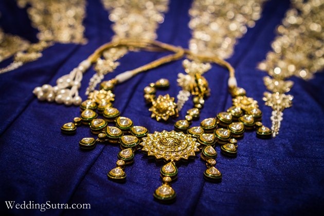 An exquisite Kundan neckpiece from Tanishq with teardrop polkis at the base and partaj engraving on the surrounding petals. Photo courtesy- Rahul and Vibhuti (The Lightsmiths)