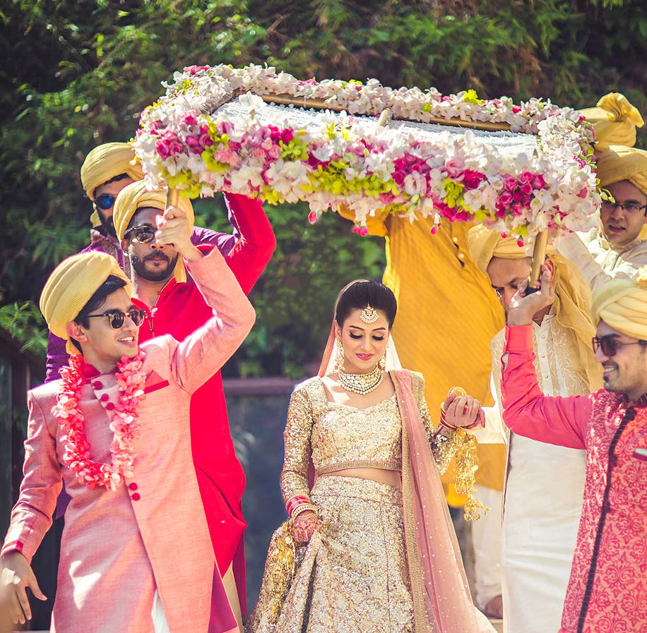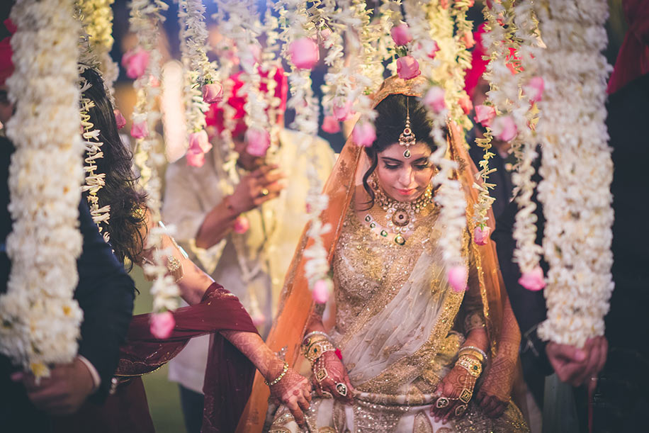 The traditional phoolon ki chaadar, lush with tuberoses and some roses not only looks splendid but its perfume is unmatched. This is a classic entry for brides who want to keep it simple and elegant.