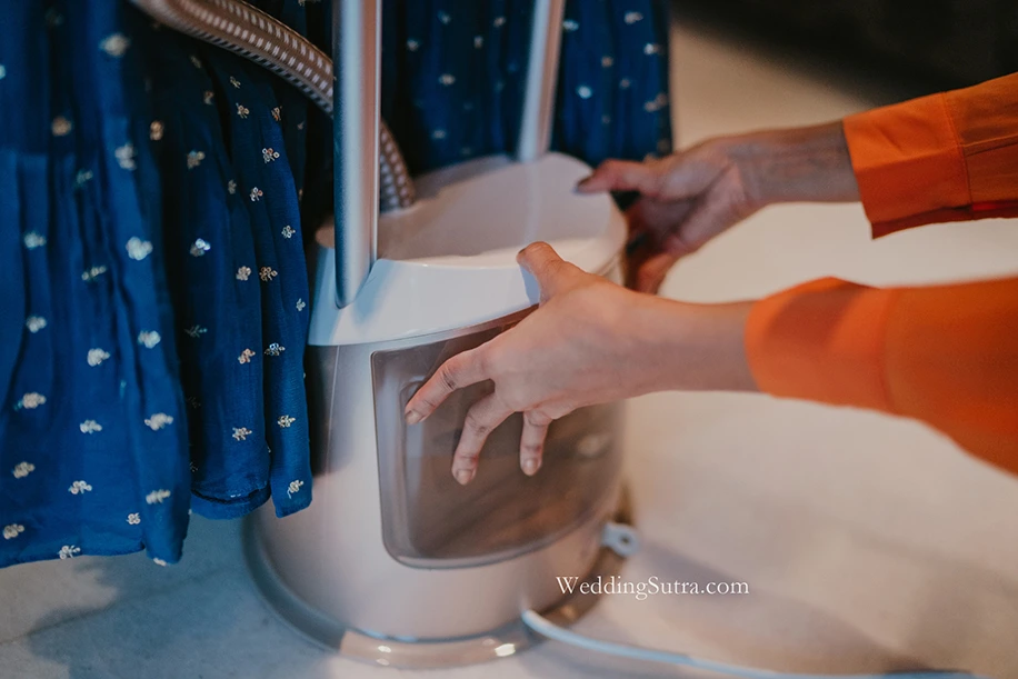 Be it an intimate home-based celebration or a big event, wrinkles on your lehenga can instantly hamper a good first impression. However, for bride-to-be Tejal erasing the creases was a cakewalk all thanks to the Philips EasyTouch Plus Garment Steamer which with its special garment hanger, powerful continuous steam, and detachable water tank ensured wrinkles along with harmful bacteria were a thing of the past on her delicate lehenga and she was no longer worried about damaging the delicate embroidery.