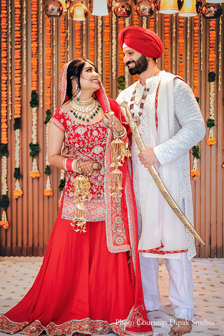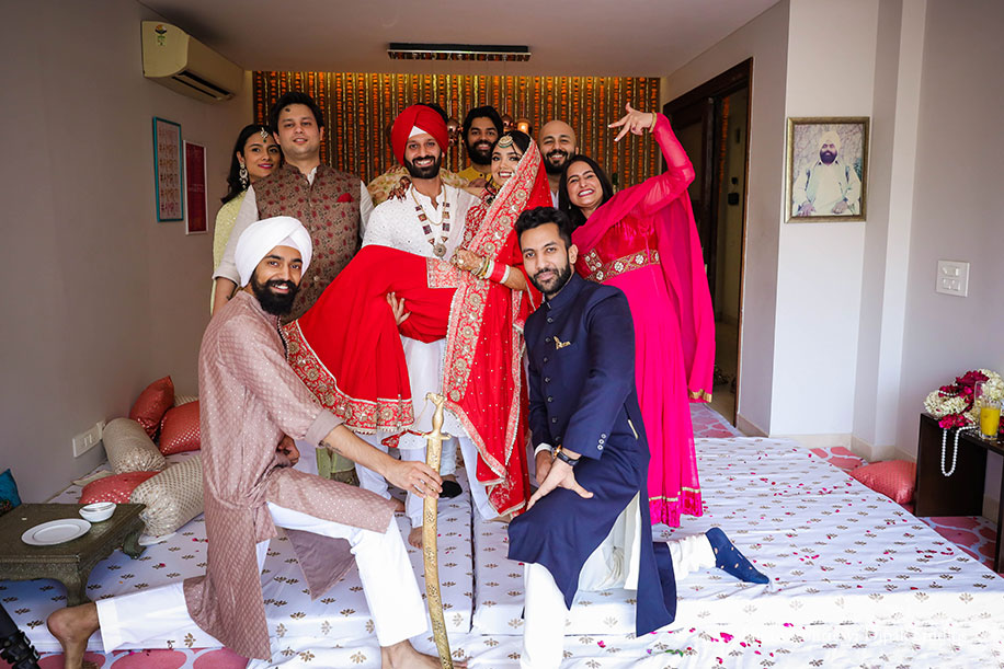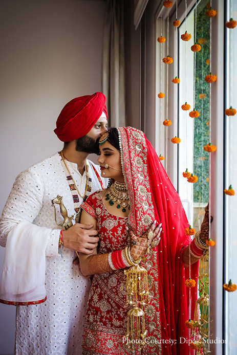 Riti and Amrit’s love story started with a fateful right swipe which led them to meet up and discover that they had more in common than what they’d initially thought. After a whirlwind romance, the duo decided to tie the knot, but as the COVID-19 pandemic spread its branches across the globe, both of them had to face the dilemma of having their well-laid plans scattered into chaos. But, with sheer determination, love, and ingenuity, they let go of their dreams of having a grand Punjabi wedding, and instead, focused on celebrating their love with a cozy, close-knit wedding ceremony held in Riti’s living room at New Friends Colony, Delhi. Captured by WeddingSutra Favorite – Dipak Studios who with their exceptional skill behind the lens gave the couple a treasure trove of memories, this couple’s wedding was filled to the brim with fun, joy, and love.