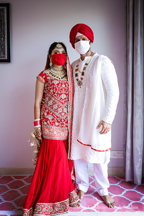 When quizzed about her home wedding experience, the exuberant bride shares, “Honestly, as a Punjabi who had witnessed many grand weddings, I’d never imagined a small affair for myself, and had been building up towards a huge celebration for myself. But after this, I realized that my small intimate nuptials had everything I ever wanted in a wedding. We both felt extremely blessed and realized that material things don’t matter and at the end of the day, only love does. Our vendors were also very understanding and did not let the confines of a home limit their creativity. Dipak Studios, especially, impressed us with their stunning shots that captured the essence of each moment. And, most importantly, all my family members had so much fun even while maintaining the social distancing norms.”