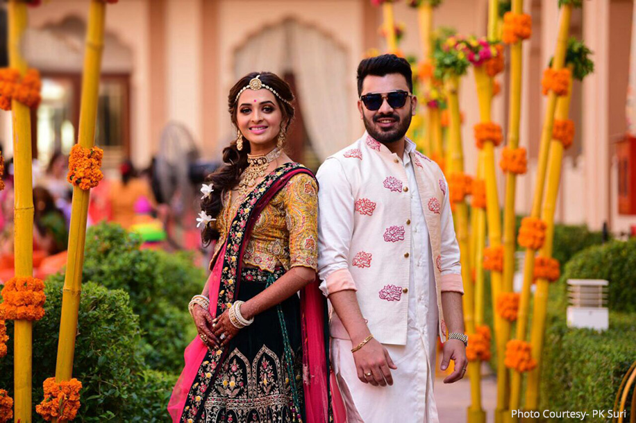 Kripa and Yash Mehta in a picture perfect moment at their mehndi at Indana Palace Jodhpur