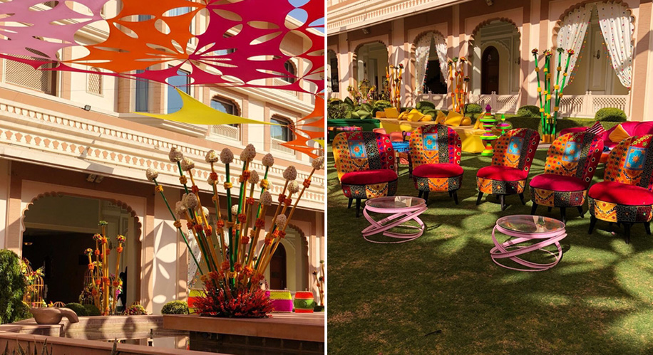Venues: Turf Club, Mumbai (Pre-wedding and Engagement), Indana Palace Jodhpur (Mehndi), WelcomHotel Jodhpur (Sangeet), Maharaja Gaj Singh Polo Ground (Polo Brunch)