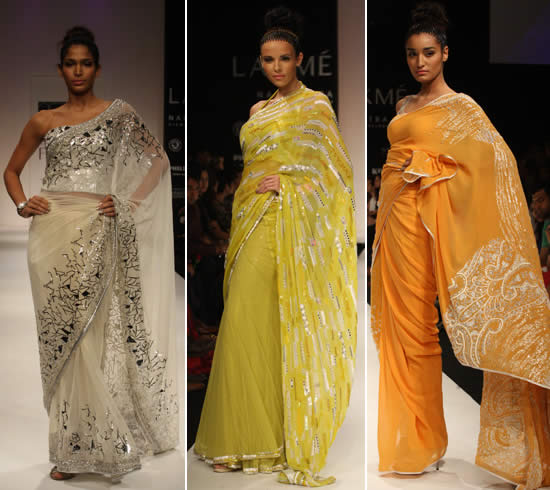 The collections of exquisite saris, lehengas and dresses was everything you would expect from the label and the Bollywood stars on the ramp added to the glamour of the fabulous Satya Paul show on Women’s Day at Lakmé Fashion Week Summer/Resort 2010.