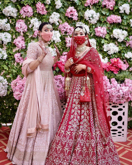 Always enterprising, designer brands and trendy couples found interesting ways to add some flair to the guidelines. While couples could still live out their royal wedding fantasies by dressing up for their home weddings, mandatory face masks posed a dilemma – beautiful memories over health? However, fashion lovers found their solution in custom made masks either made creatively at home or put together by their designers to match their outfits. We applaud these couples for their initiative to make their day special while strictly following rules to ensure the wellbeing of themselves and their families.