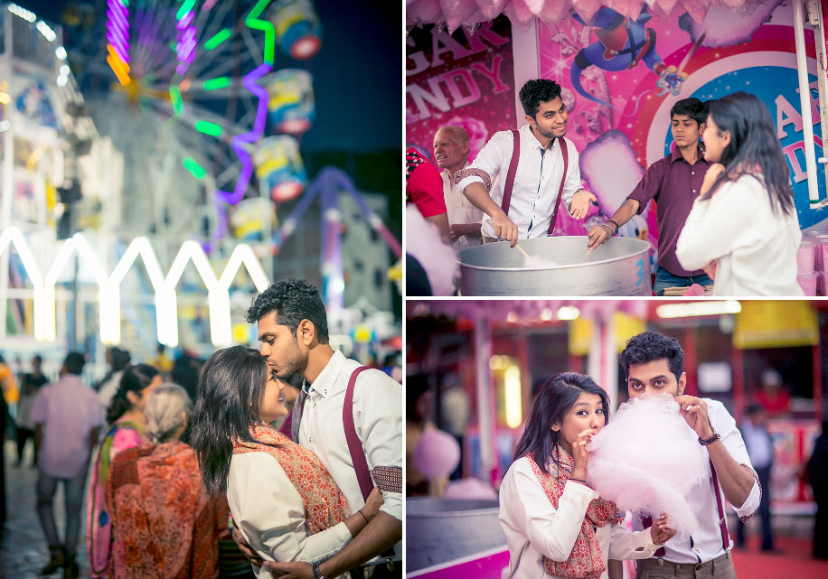 Cotton candy, ferris wheels and bubbles were the perfect backdrop for Nabiya and Abid’s pre-wedding photo-story of young love.
