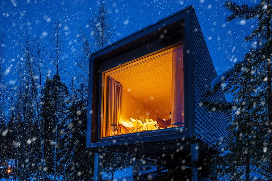 Bearing a close resemblance to a nest in the middle of a forest, this hotel offers a bird’s eye view of the Arctic landscape and boasts of modern Scandinavian design rooms.