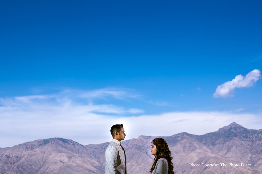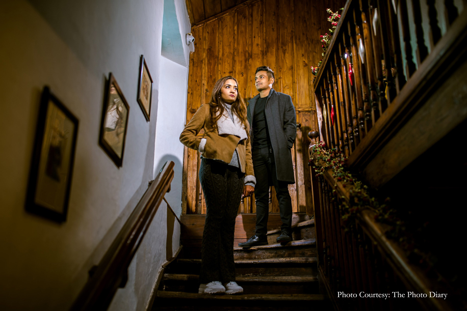 Clear blue skies, majestic oak trees and calm mountains symbolize the beauty of Mussoorie which is known as the ‘Queen of the Hills.’ Rajvi and Mahek’s sun-kissed photos here make for stellar moments and warm memories. The Photo Diary captures the magical effect of the sun’s ray on the couple with the dimly lit background, and the contrast balances out the tone of the photos.