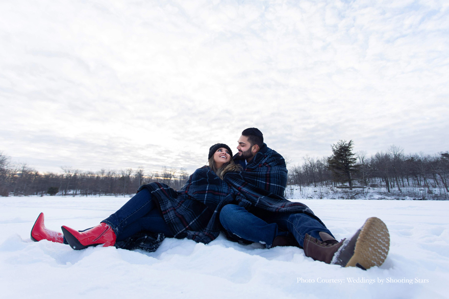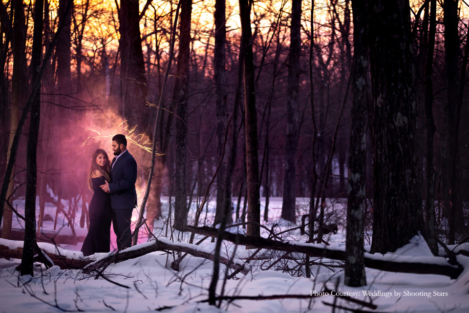 The frozen lake, dense woods and a castle make for the perfect backdrop for Vrunda and Sunny’s pre-wedding photoshoot. The stunning photos by Weddings by Shooting Stars are enhanced by the natural light and the scenic beauty of the locale. The striking fusion of colors brings about a sense of serenity with each frame.