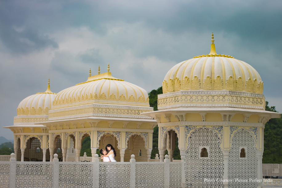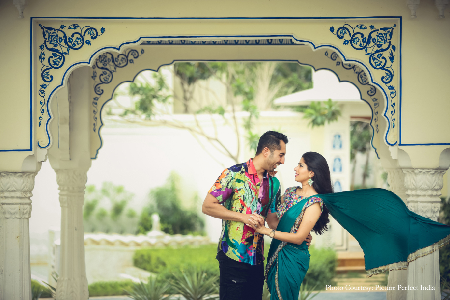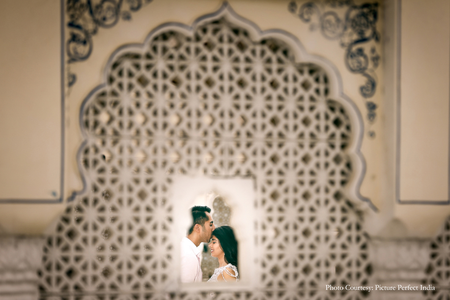 Capturing the magic at a pre-wedding shoot can be an unforgettable experience. Recalling the moments of Karishma and Jai’s romantic pre-wedding shoot, the team from Picture Perfect India shares, “Karishma is from Hong Kong and Jai hails from Sydney. They decided to tie the knot in the ‘Pink City’ of Rajasthan – Jaipur. It was supposed to be a fun-filled and busy three days of non-stop festivities. Our team had not met them before and to break the ice we decided to do a pre-wedding shoot a day before the start of the functions. We had a fun and relaxed shoot at the JW Marriott Jaipur which is located right amidst the Aravalli hills and surrounded by palaces. Both Jai and Karishma were easy going and fun loving, and we had a great time capturing the chemistry they share.”