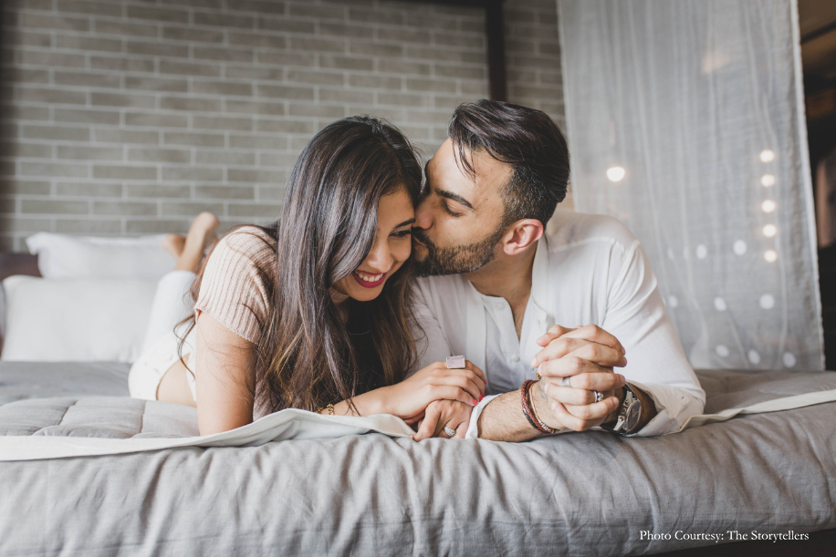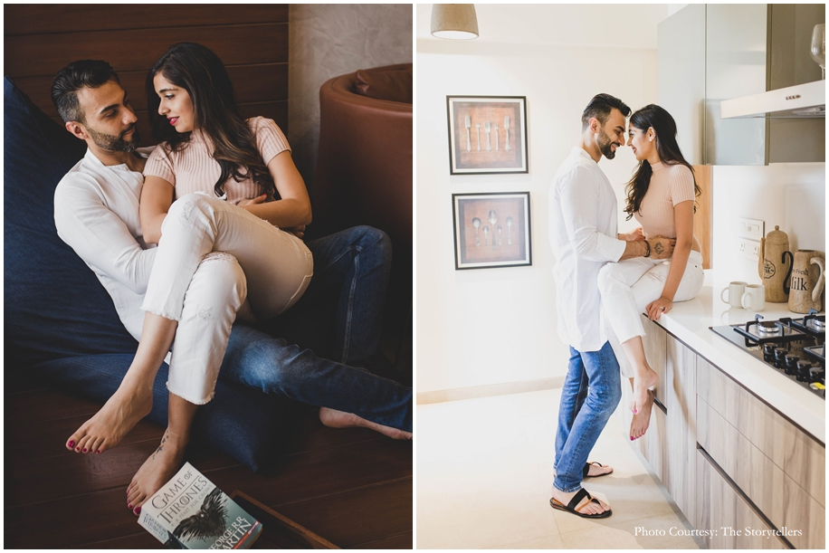 Sometimes it is the little things that make a difference to the big picture. Monika and Bradj’s pre-wedding shoot captured by The Storyteller has that indefinable ‘wow factor’ that makes it one of our favorite photo shoots of the month. From casual poses to dramatized frames, the images capture the powerful chemistry between the couple. The concept was subtle, and the focus was on the sweet little moments the two shared. One set of shots is all about white, light and casual, and another set, focuses on black, formal and glamor. The contrast between these two moods is cleverly highlighted through the use of locations, backdrops, ensembles and expressions.