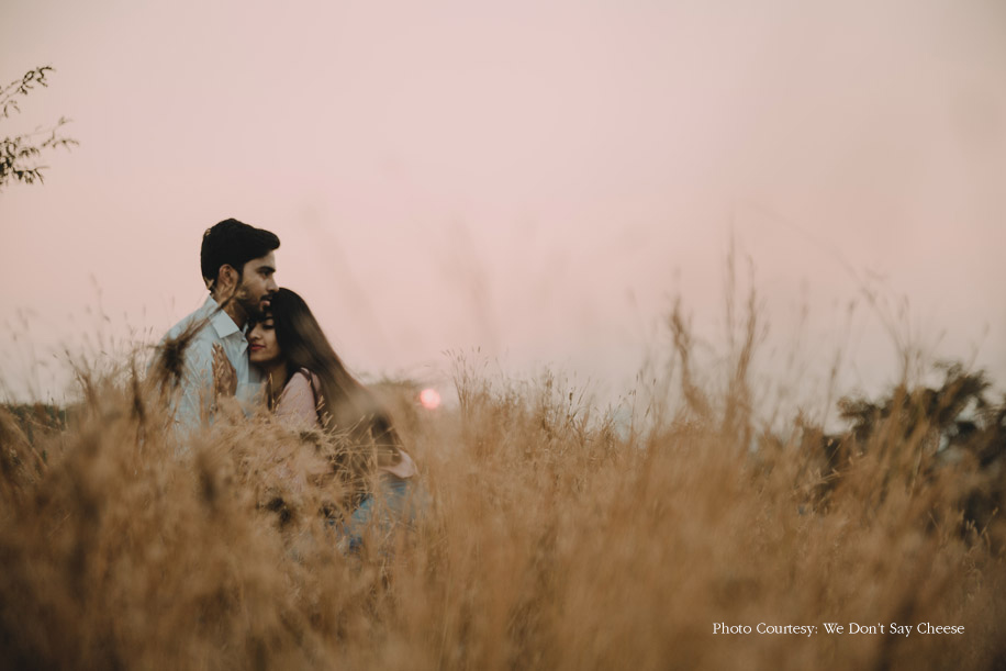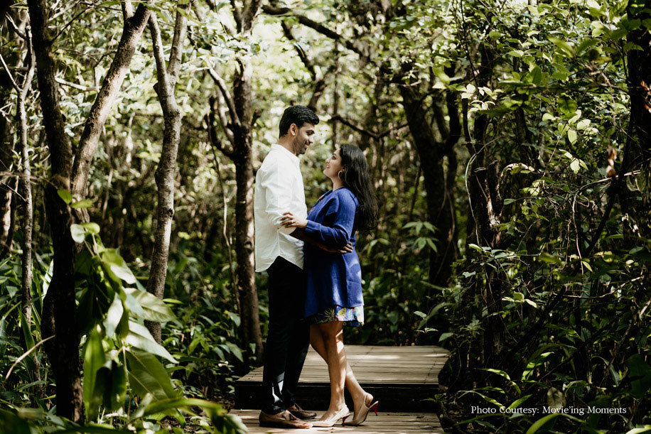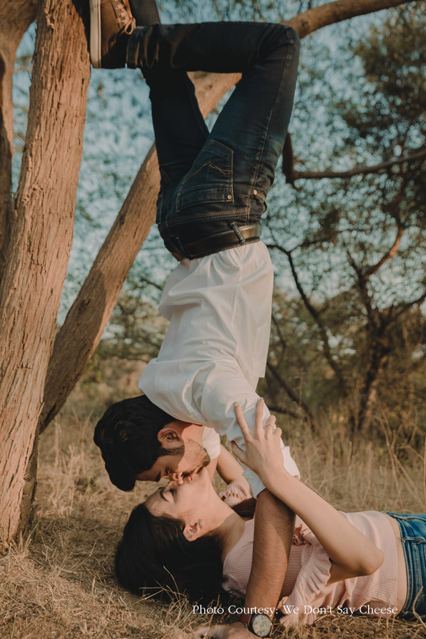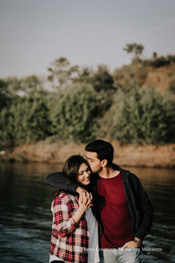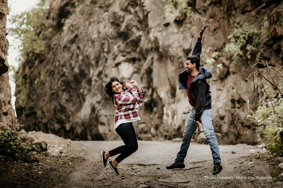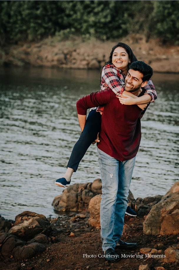 A hilly landscape and a picturesque setting extend just the right mood for romance. So Ritika and Jimit made their way to The Machan in Lonavala for their pre-wedding photoshoot. However, the appeal of the beautifully framed pictures shot by Movie’ing Moments goes beyond just visual allure.