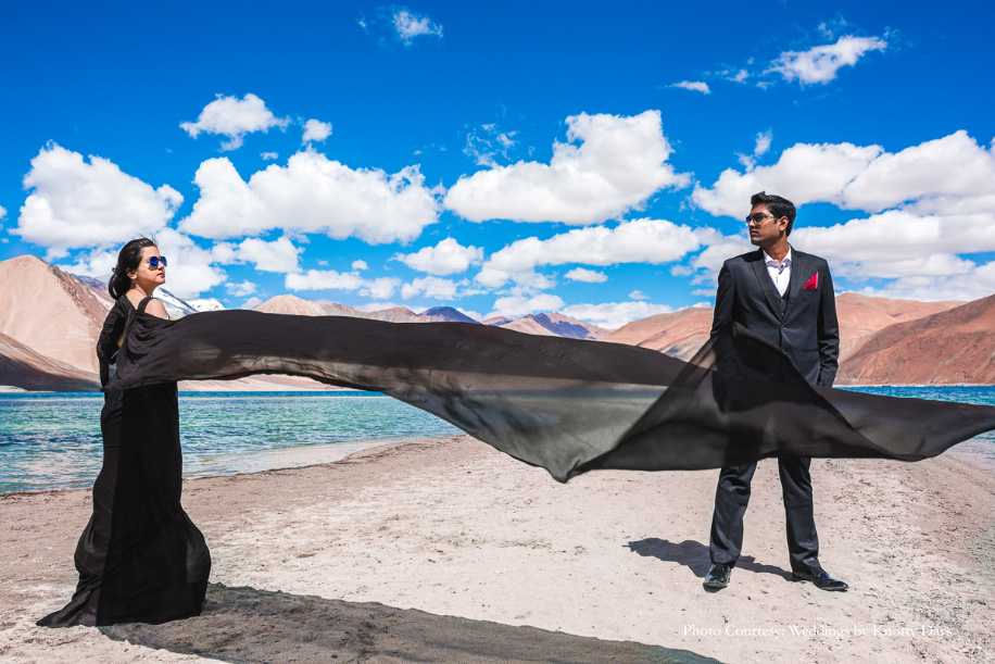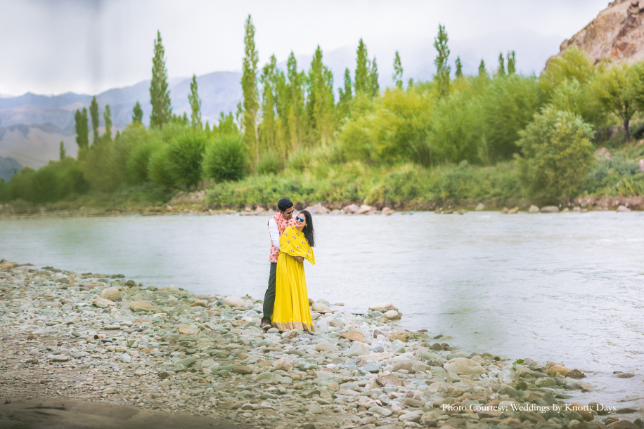 Leh’s stunning landscapes always threaten to outshine any subject you put before them but Weddings by Knotty Days managed to keep Niharika and Vishrut’s romance very much ‘in the picture’ at their pre-wedding photoshoot in the stunning high-altitude desert. The talented team shot this gorgeous couple and captured warm emotion with the beautiful but cold mountains of Leh as their backdrop.