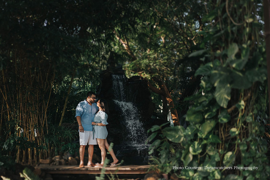Sexy, playful, romantic – a pre-nuptial photoshoot featuring waterfalls as a backdrop is just dreamy. Kanchi and Aditya’s photoshoot was a telling of their sweet love story with pictures taken at a romantic picnic for two and a leisurely boat ride. Team Dreamcatchers Photography caught every nuance at the gorgeous Anchaviyo Resort.