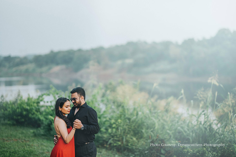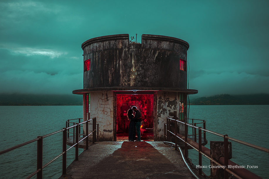 Mist, hills, large expanses of water – these are scapes meant to inspire romance. Pawna and Lonavala have earned their place at the top of pre-wedding shoot location lists for exactly these reasons. Shruti and Siddharth’s photoshoot by Team Rhythmic Focus managed to capture some candid pictures near the lighthouse and that unmistakable hygge on the hilltop, the rolling mists enhancing the vibe.