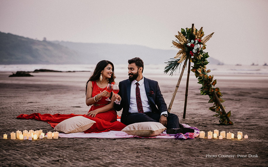 High school sweethearts who become life partners are not mere chapters in each other’s lives but an entire story together, a story evident in Isha and Shantanu’s photoshoot at Sagar Sawali Beach Resort. A couple who believe in relishing every small moment together, Team Pune Dusk brought their great joy in everyday magic from the real world to pictures via their intuitive lens.