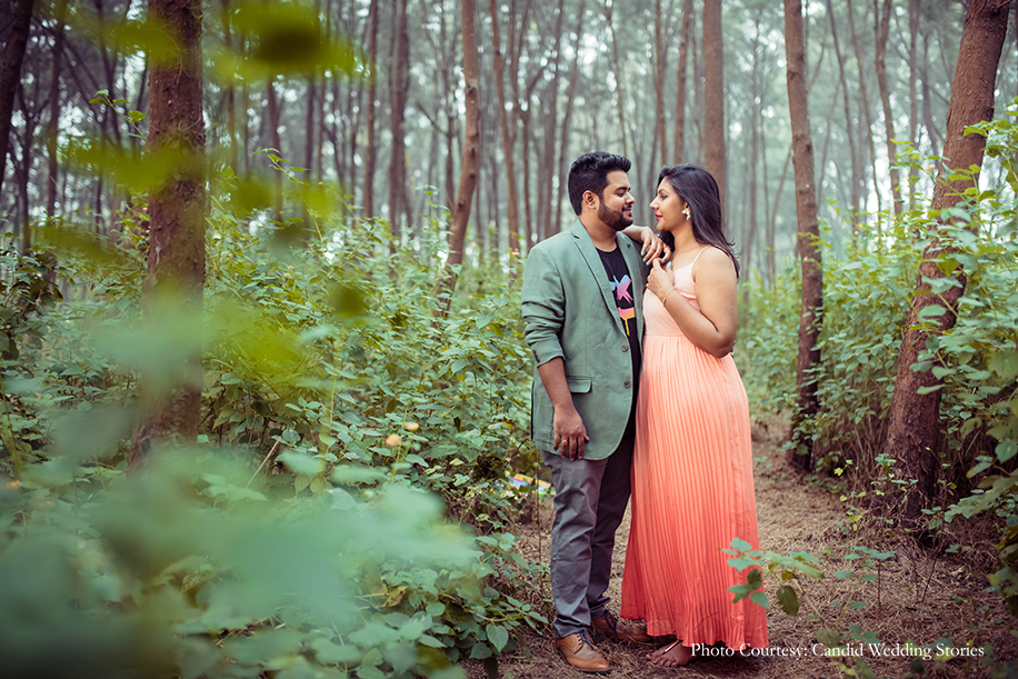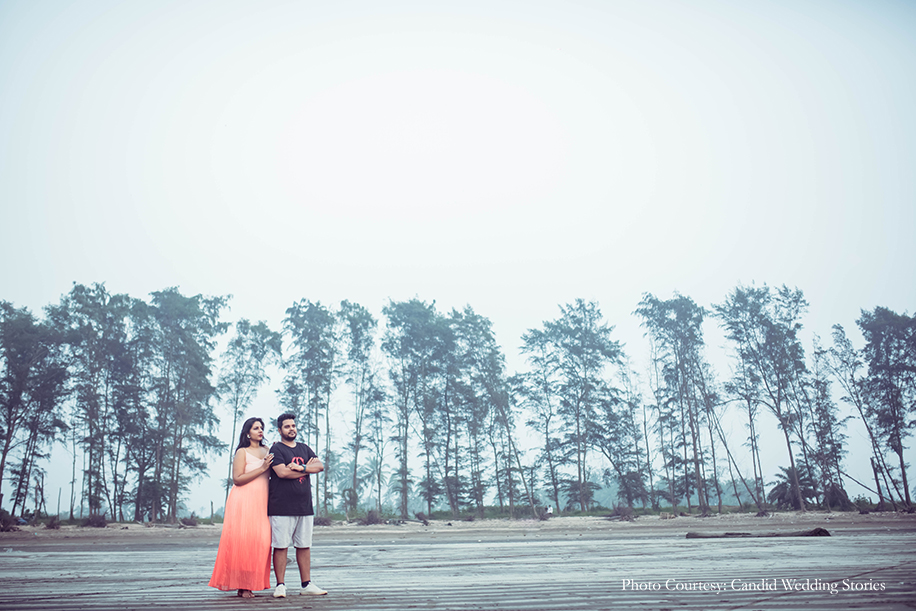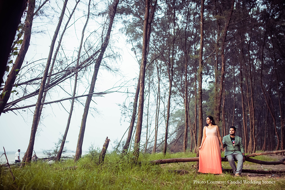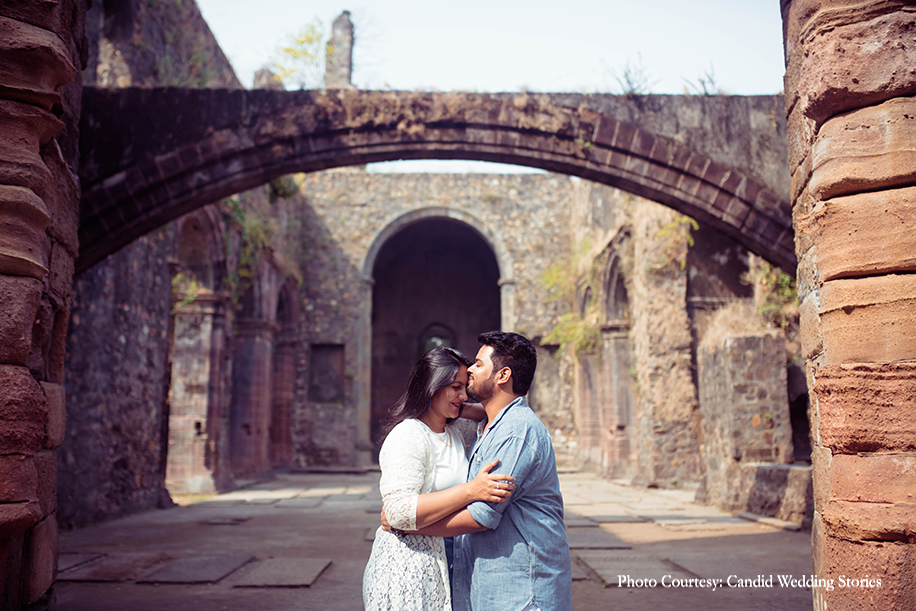 Vishal and Surbhi’s magical shots captured in the natural beauty of suburban Mumbai takes us on a poetic journey of their love. Shot by Candid Wedding Stories, frames of ancient ruins overgrown with lush foliage, forest paths and expansive rustic beaches make for evocative images.