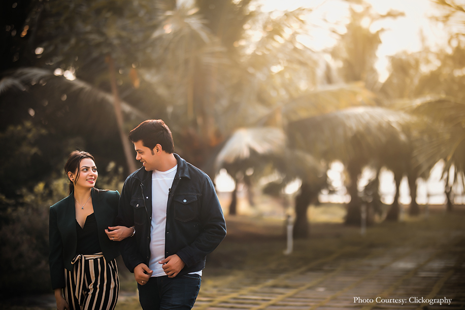The soft and romantic earthy tones of Mitesh and Kavitha’s photoshoot at Kashid beach transport the viewer to a different world. As the backgrounds flow from one gorgeous location to another, their love is showcased in its charismatic intensity through ethereal shots captured by Clickography.