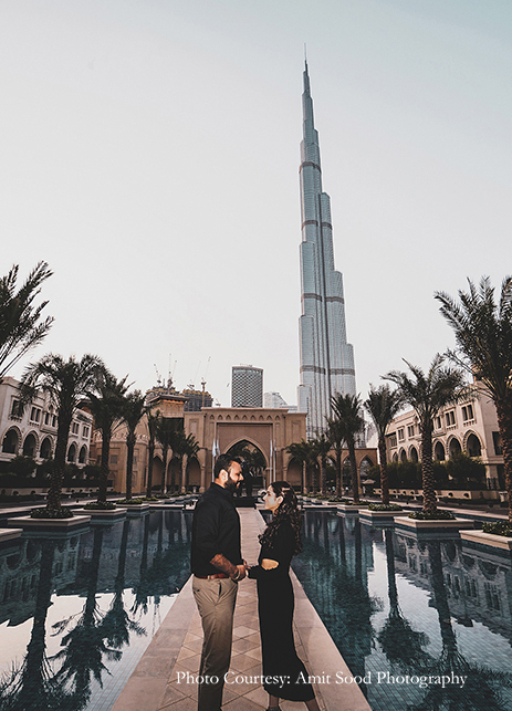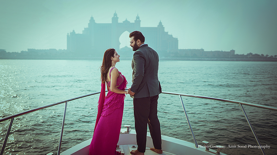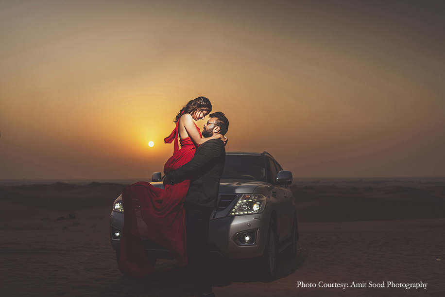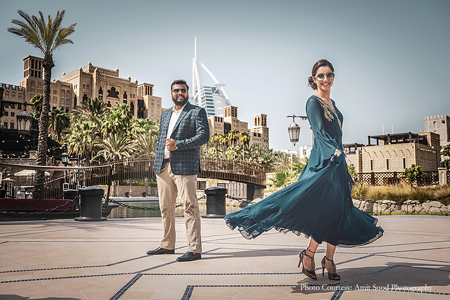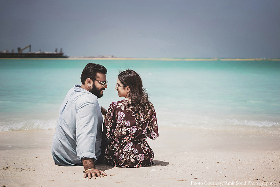 A favourite amongst tourists, Dubai proved to be a gorgeous location for Gurneet and Rajat’s pre-wedding photoshoot. The brilliant blue sea waves and warm desert winds provided stunning backdrops to the shoot, captured perfectly by Amit Sood Photography.