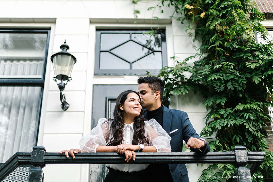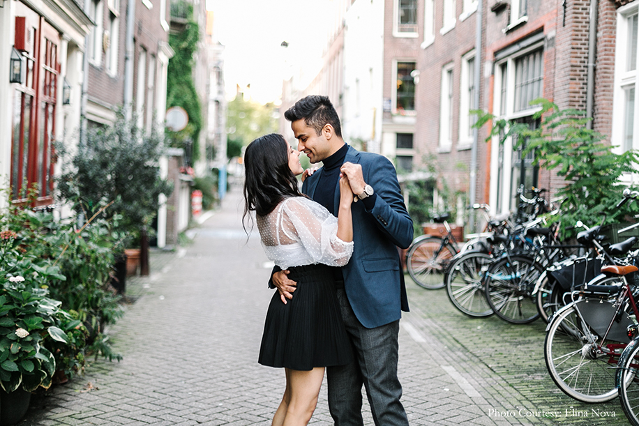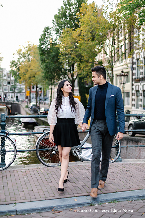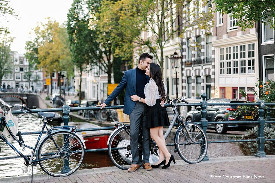 Amanpreet and Nitish’s pre-wedding shoot in the suave locales of Amsterdam by Elina Nova is a refreshing treat for the eyes. The shoot focuses on the couple having fun around the town, decked in formal outfits. The stunning facades of Amsterdam add charm to these pictures which perfectly encapsulate the love and bonding shared by the couple.