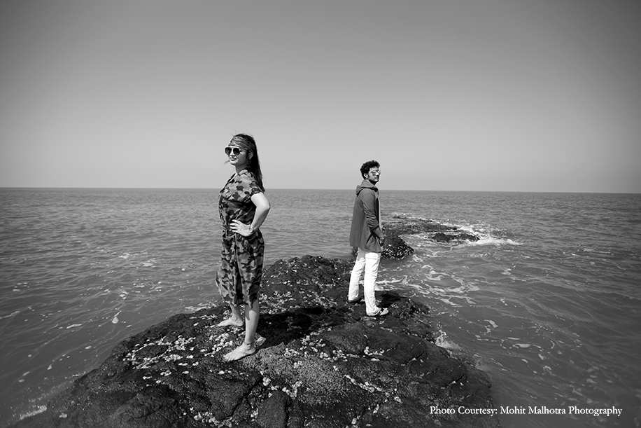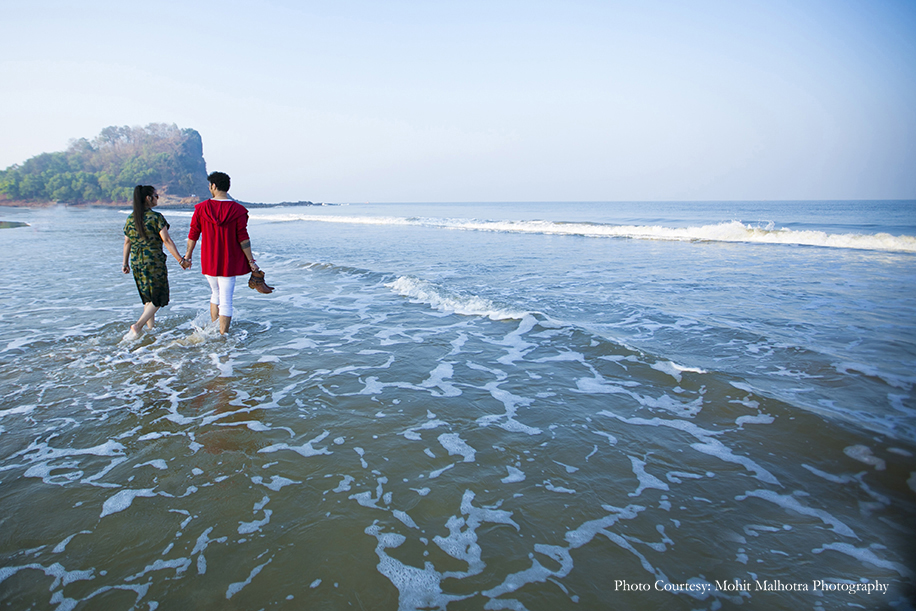 Akshata and Abhishek’s pre-wedding photoshoot at Kashid Beach, beach in Alibaug was as playful as the couple. Frothy waves, blue waters, and seaside rocks painted an ideal canvas for the couple as they enjoyed spending sweet moments with each other, while the team of Mohit Malhotra Photography captured them at their candid best.