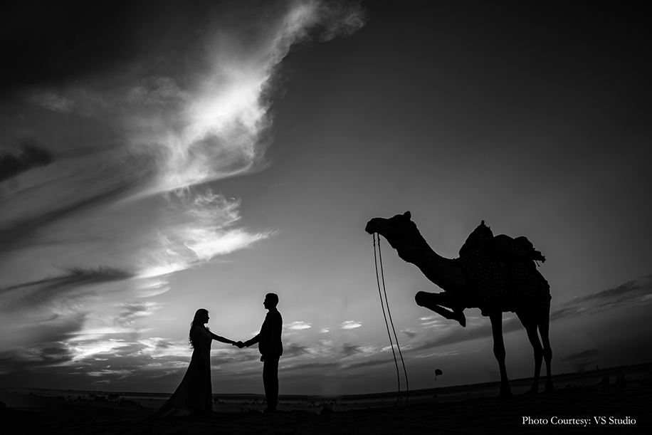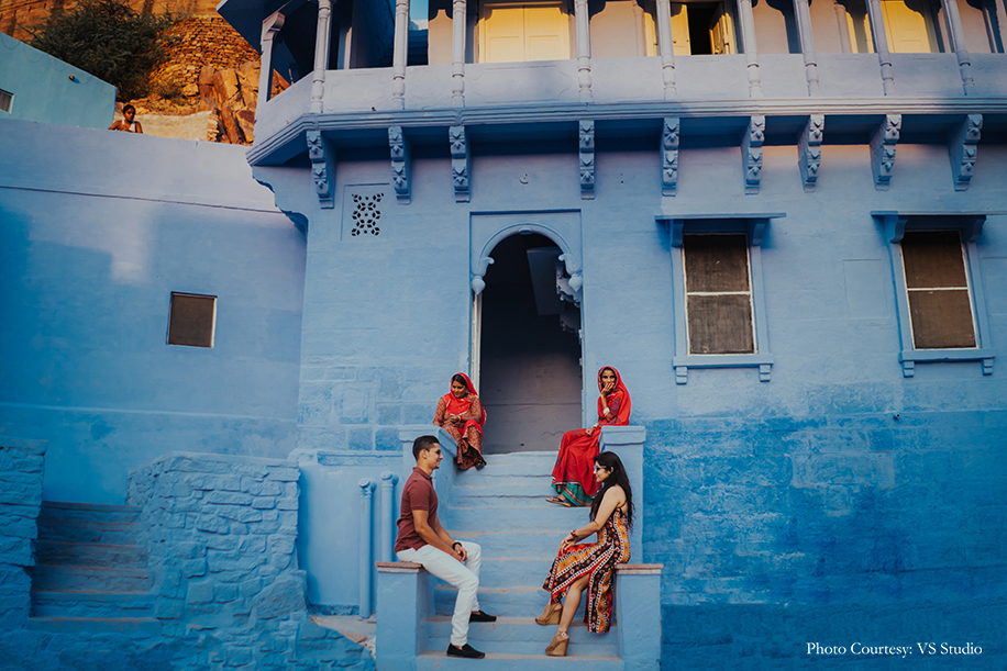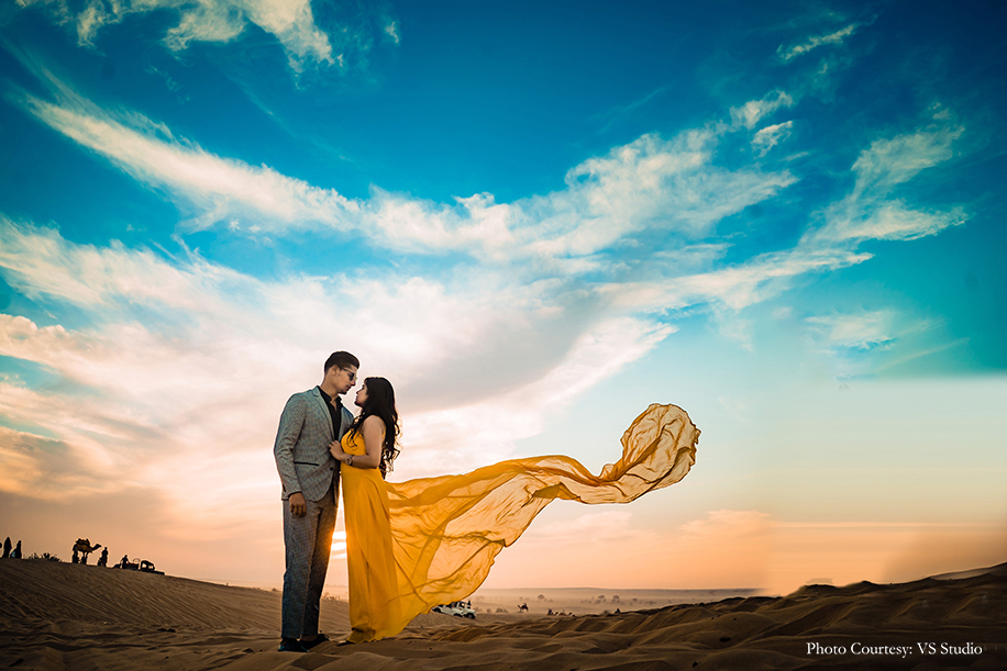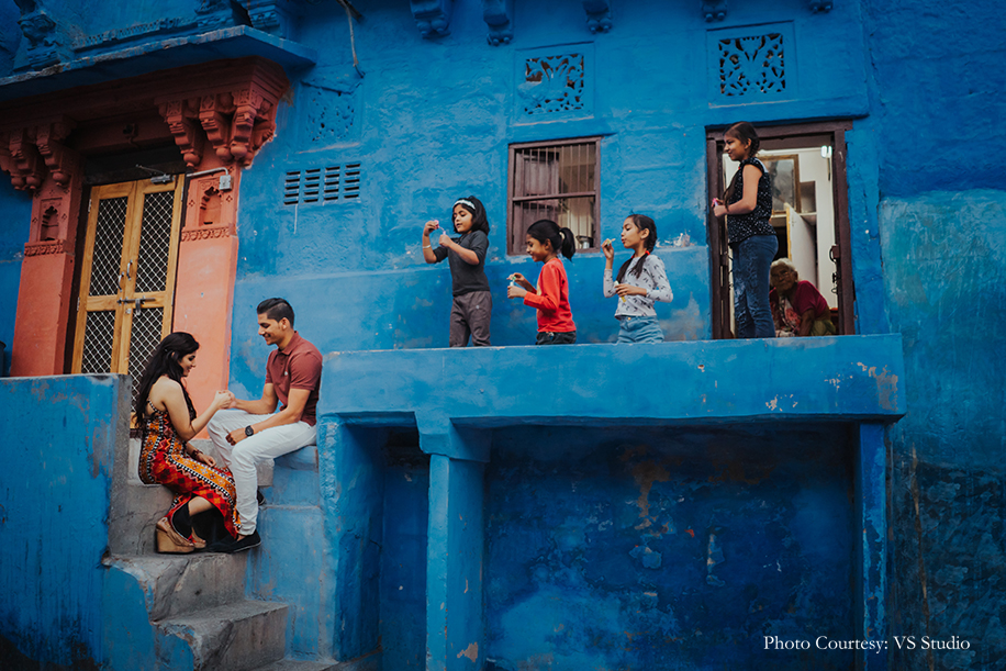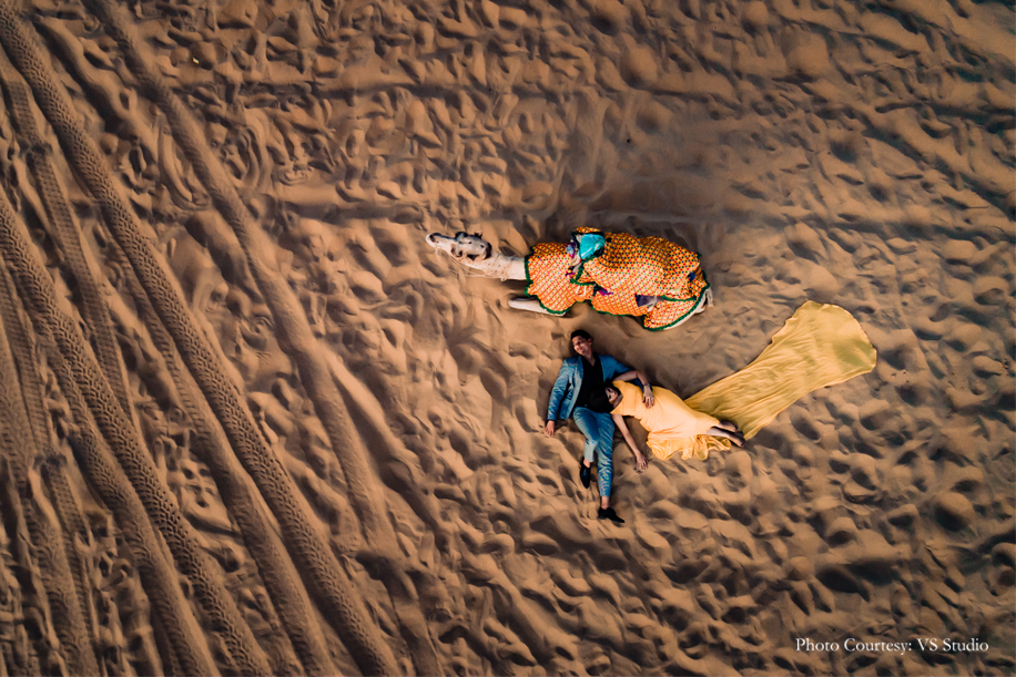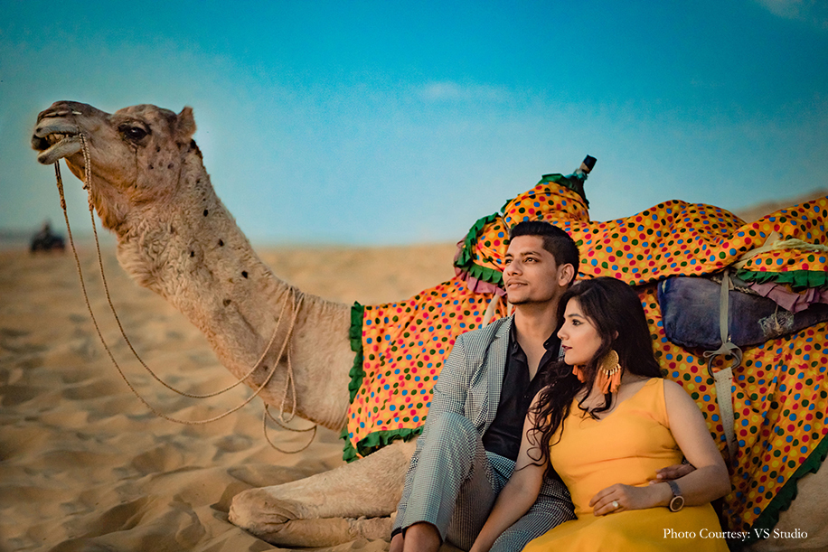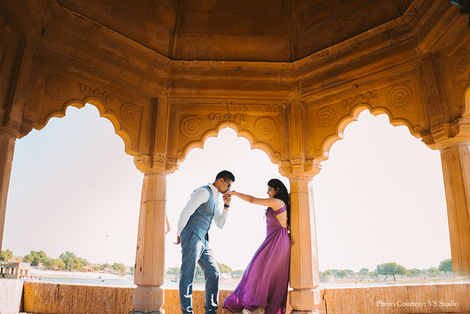 Hodophiles Ankita and Ankur wanted to showcase their love for travel as well as incorporate their ethnic Marwari culture into their pre-wedding photoshoot. The result was this ethereal shoot in the historic and charming cities of Jaisalmer and Jodhpur by VS Studio.