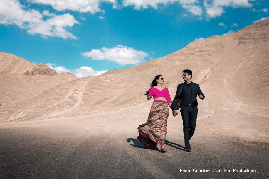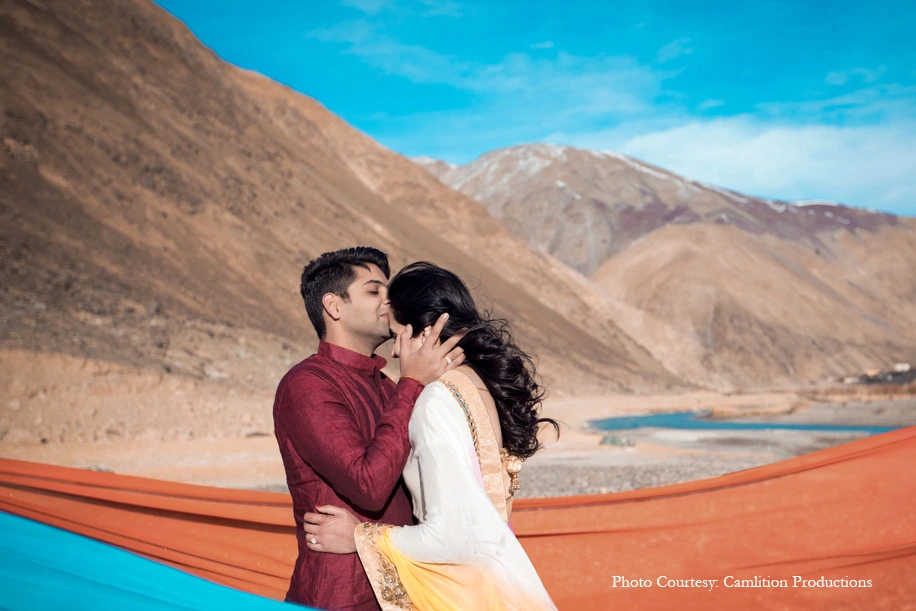 However, orchestrating a perfect pre-wedding photoshoot is by no means an easy task! Fortunately the wedding industry has some extremely skilled experts to guide and support you through this process. Ashish Senger, Founder and Director of Camlition Productions which is an award-winning wedding photography and film production company based in New Delhi, gives us an exclusive insight into their creative process as they go about crafting one stunning photoshoot after the other. So if you’re a couple looking to capture some beautiful memories right before the big day but are on the fence about the location or the theme, this might be just the answer you’re looking for!