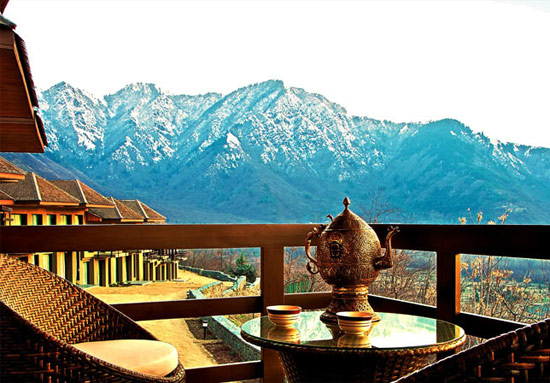 Perched on Kralsangri hill that captures the finest panoramic view of the Dal Lake and surrounded by the majesty of the Zabarwan Mountains, it is a Paradise rediscovered. The view is stunning and changes with the seasons: Get a bird’s eye view of the spring-summer magical bloom of the Tulip Gardens, the snow-capped peaks of the Zabarwan range in winter, Gulmarg range in spring and the golden glow of the Chinars in autumn.