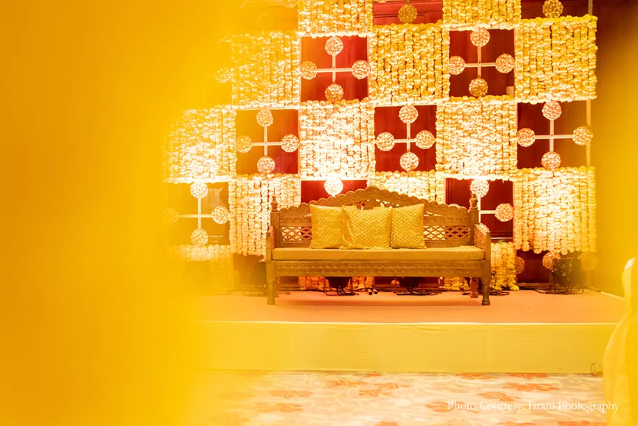 Planning and decorating a destination wedding for a big Indian corporate family is no mean feat, but armed with impressive creativity and his reliable team at Krayonz Entertainment, Achint Nag brought the couple’s vision to life. Giving us an overview of what went on behind the scenes and his creative process, Achint shares, “Be it the Haldi, Tel baan or Bhaat ceremony, we ensured that each event had its own unique setup. For us, no event was the same as we crafted different themes and used varying color tones so that each event in the nuptials stood apart from the other. Different furnishings were also used for each event which in turn led us to create Dior, Tiffany and wooden chairs along with a plethora of tables that would seamlessly fit into the events’ themes.