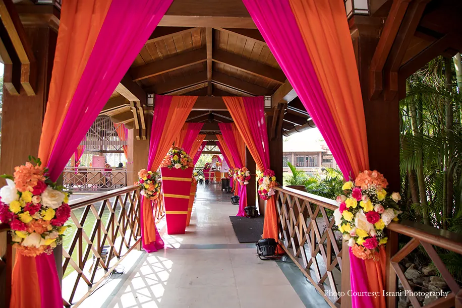The nuptials kicked off on an auspicious and funfilled note with the Haldat and welcome party. Achint from Krayonz Entertainment shares, “After the Haldat and welcome party, a musical night along with an after-party was hosted. For the musical night, Sufi tunes enthralled the guests and the decor followed a distinctly Indian theme. Also, during the course of the event, the very talented Ambili Menon had everyone grooving to her mesmerizing tunes. Following this, a pop art themed after-party raised the spirits even higher as guests enjoyed themselves till the wee hours of the morning.”